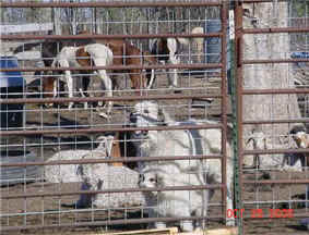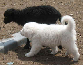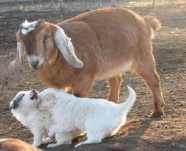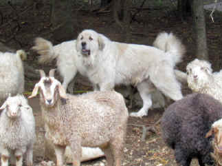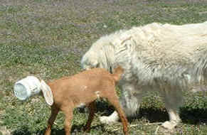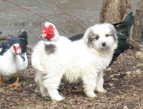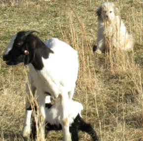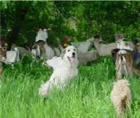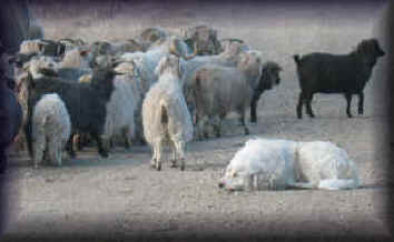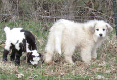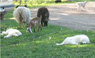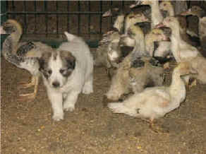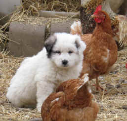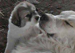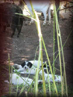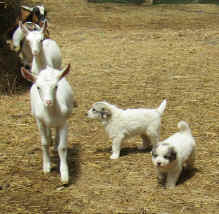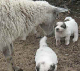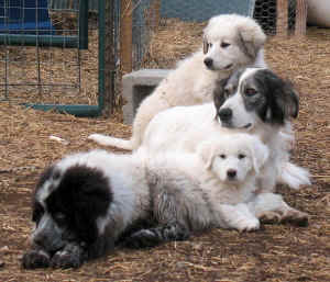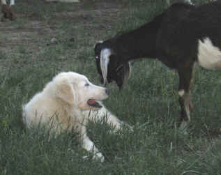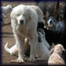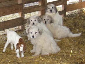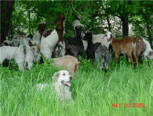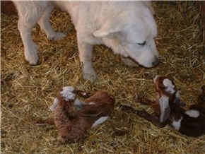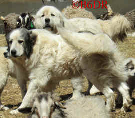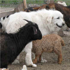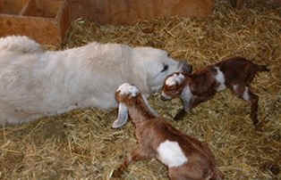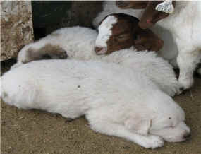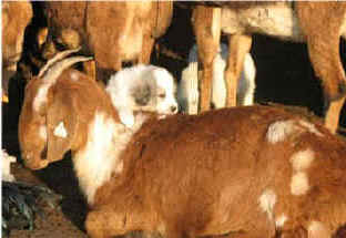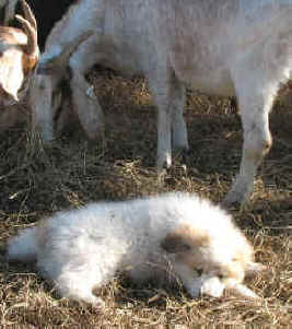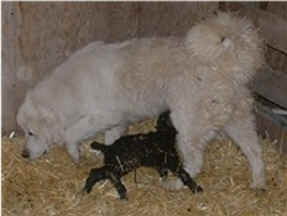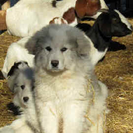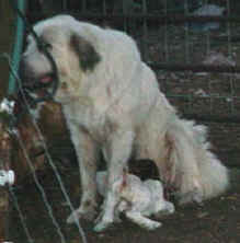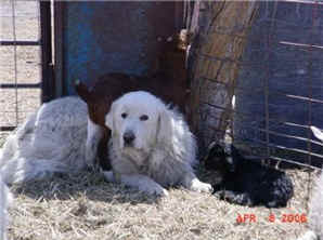 These are some pics of pups and adults that have moved to another homes and that we have still here. - doing what they do best. They are working, caring for young, even nursing a baby goat, or just in with their charges, be it human kid or goat kid. Some are funny, some are day to day. Thank you to all the wonderful homes our LGD's are in. Please enjoy as we believe pictures show it all. Click on any picture to make it larger. If you would like more information on the Pyr as an LGD, about upcoming litters, or about anything about our Pyrs - please e-mail us at info@bar6diamondranch.com, call us at (620) 779-9066 or click on the link to the left to see the LGDs available.. Working, Caring for their charges, be it sheep, goat or Alpaca and Delivering babies... As you can see - some kept their masking and color. Click on any picture to see it larger; I have them small for faster load, but you can enlarge them with just a click. You can click to see them: |